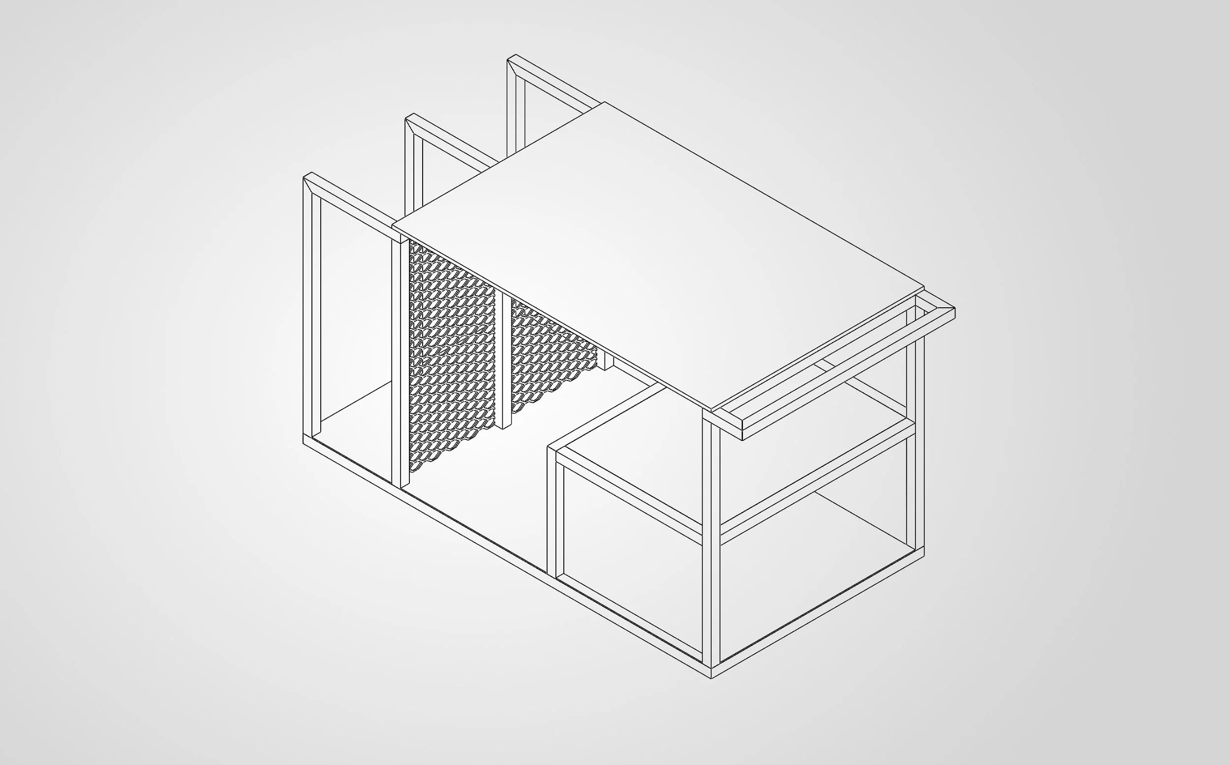 The cart deviates from the original design in two major ways- the expanded metal backplate for gas cylinder storage was replaced by steel pipe running horizontally, and the drawer space remains unfinished. Both of these changes were due to material costs.